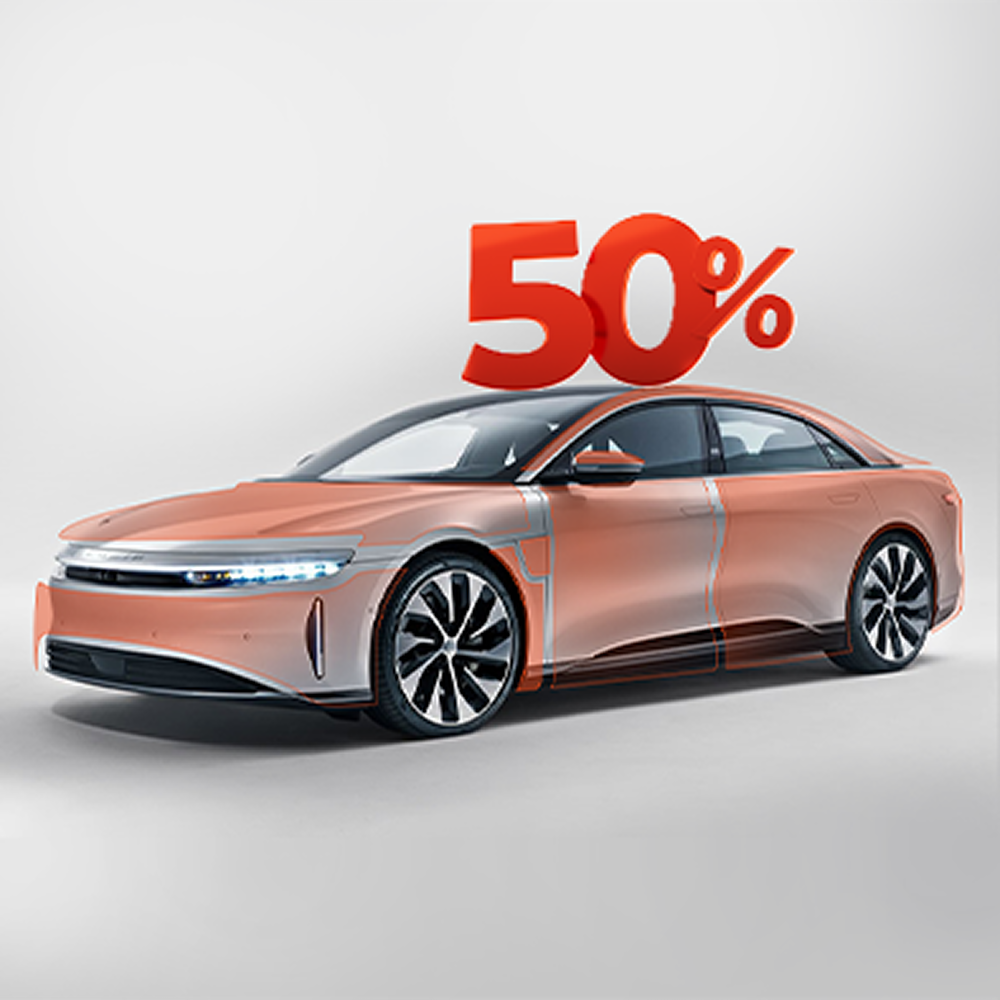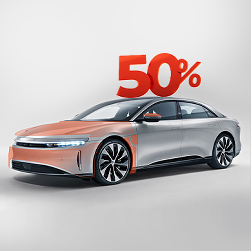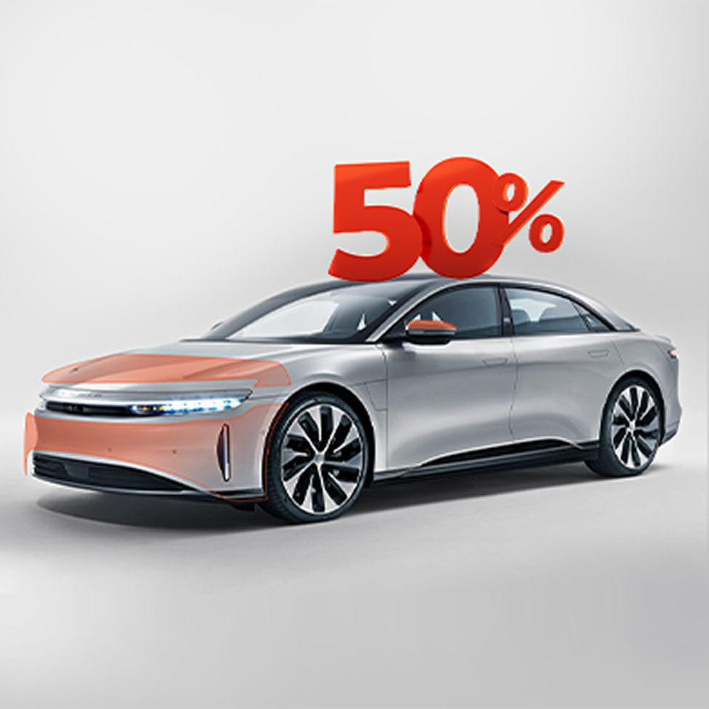 نوفر خيارات متعددة تناسب جميع الاحتياجات: حماية ربع الواجهة، حماية نصف الواجهة، والحماية الكاملة للسيارة.